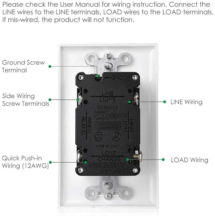 Bestten Gfci Outlet Slim Tamper Resistant Tr Gfi Duplex Receptacle With Led Indicator 20 Amp 125 Volt Auto Test Ground Fault Circuit Interrupter With Decor Wall Plate Ul Listed White Walmart Com